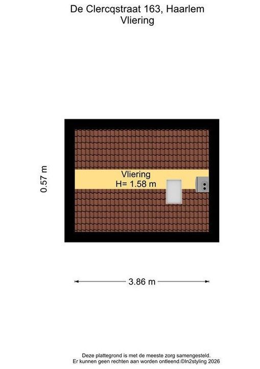 Zolder over de totale oppervlakte van de 2e verdieping.