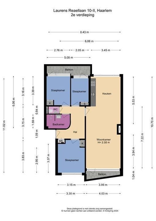 - Twee balkons (ZO & ZW)