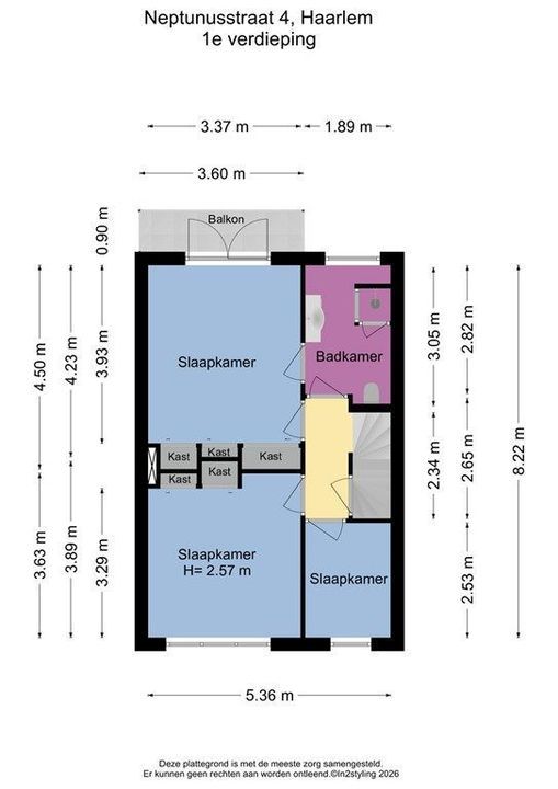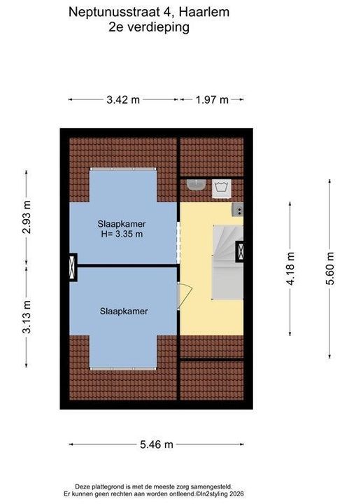 2e verdieping: overloop met aansluiting voor wasmachine/droger en veel bergruimte, 2 slaapkamers met dakkapellen.