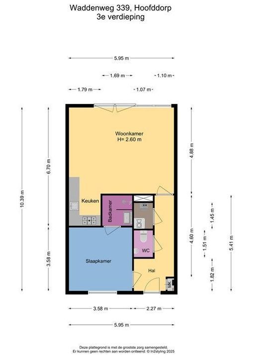 3e verdieping: galerij, entree, hal met garderobekast, wasruimte, toilet. Ruime woonkamer met ramen over de hele breedte, mooie laminaatvloer en Frans balkon. Moderne open keuken met vaatwasser, koel/vriescombinatie, 5-pits gaskookplaat, afzuigkap en combi-oven/magnetron. Ruime slaapkamer (ca. 13 m2), moderne badkamer met inloopdouche en wastafelmeubel.